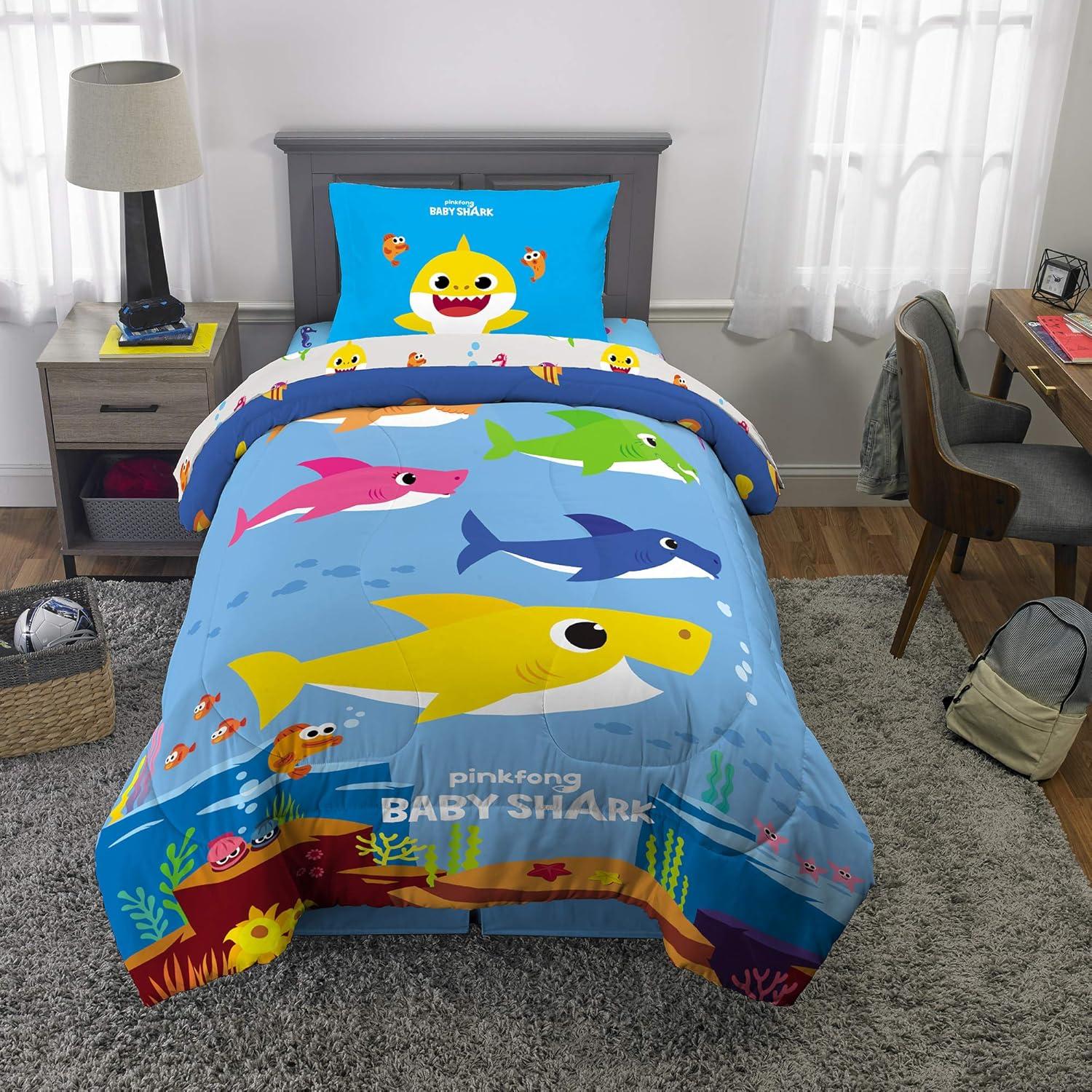 Franco Ms. Rachel Educational Adventures Kids Bedding Super Soft Microfiber Comforter and Sheet Set, 4 Piece Twin Size, (Officially Licensed Product)(Baby Shark)
