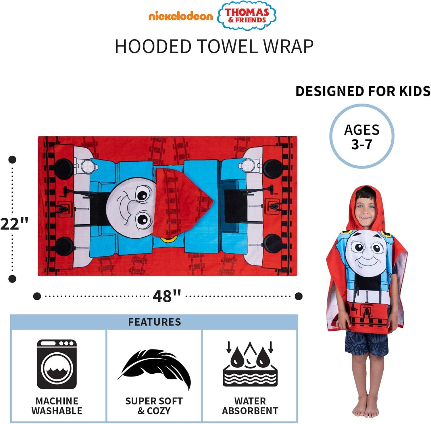 Franco Ms. Rachel Kids Beach/Pool/Bath/Camping Hooded Towel Poncho 24″ X 22″, Absorbent Cotton Cover up, (Officially Licensed Product)(Thomas)