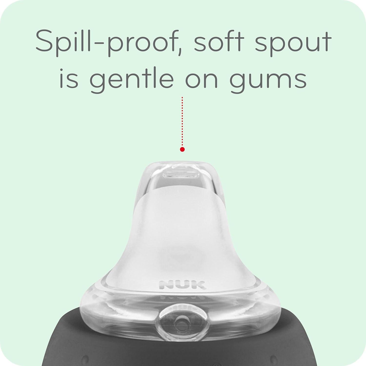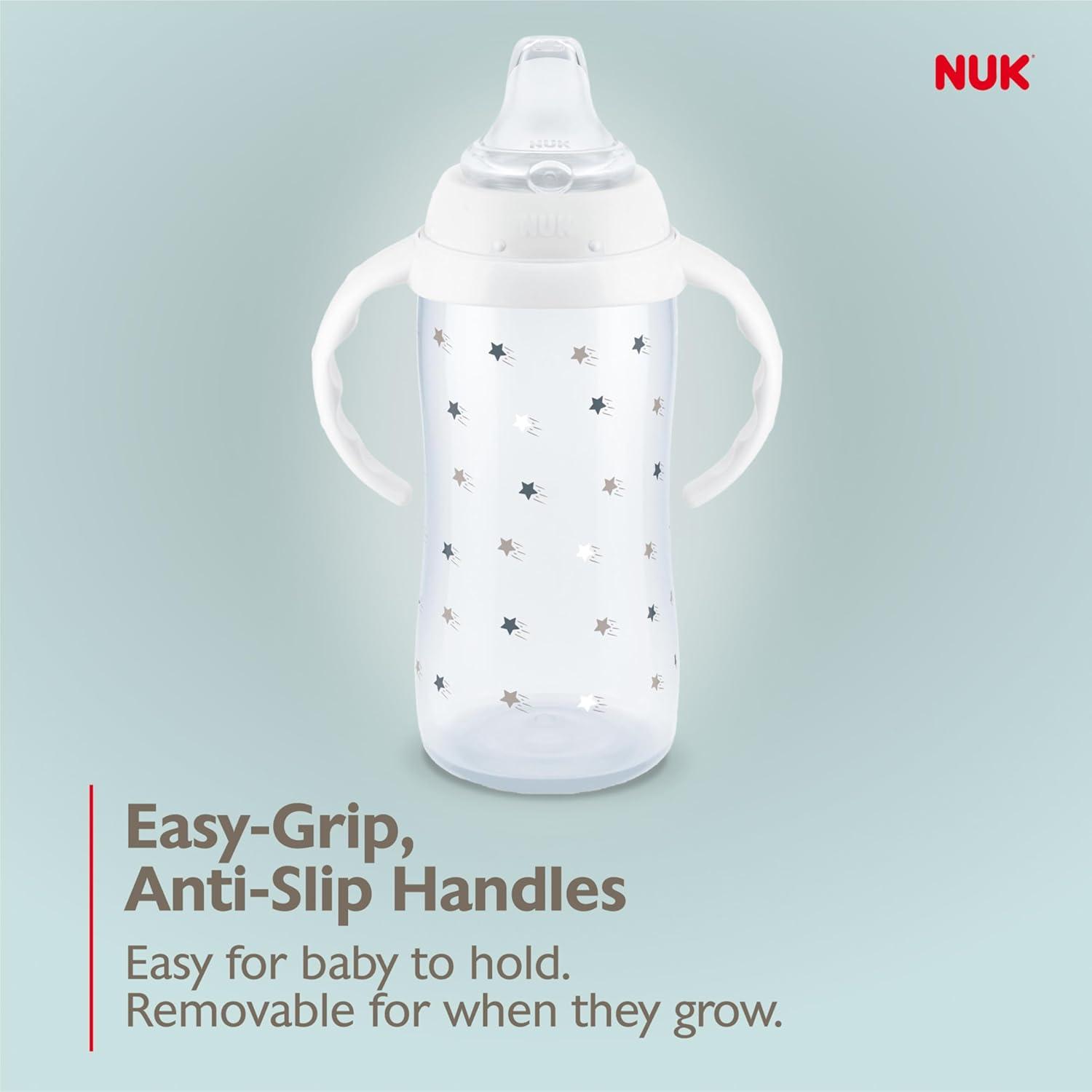 NUK Learner Cup, Ms. Rachel, 10 oz, 8+ Months, 2 Pack – Soft Spout, Easy-Grip Handles, BPA Free, Spill Proof Transition Sippy Cup(Gray Stars)